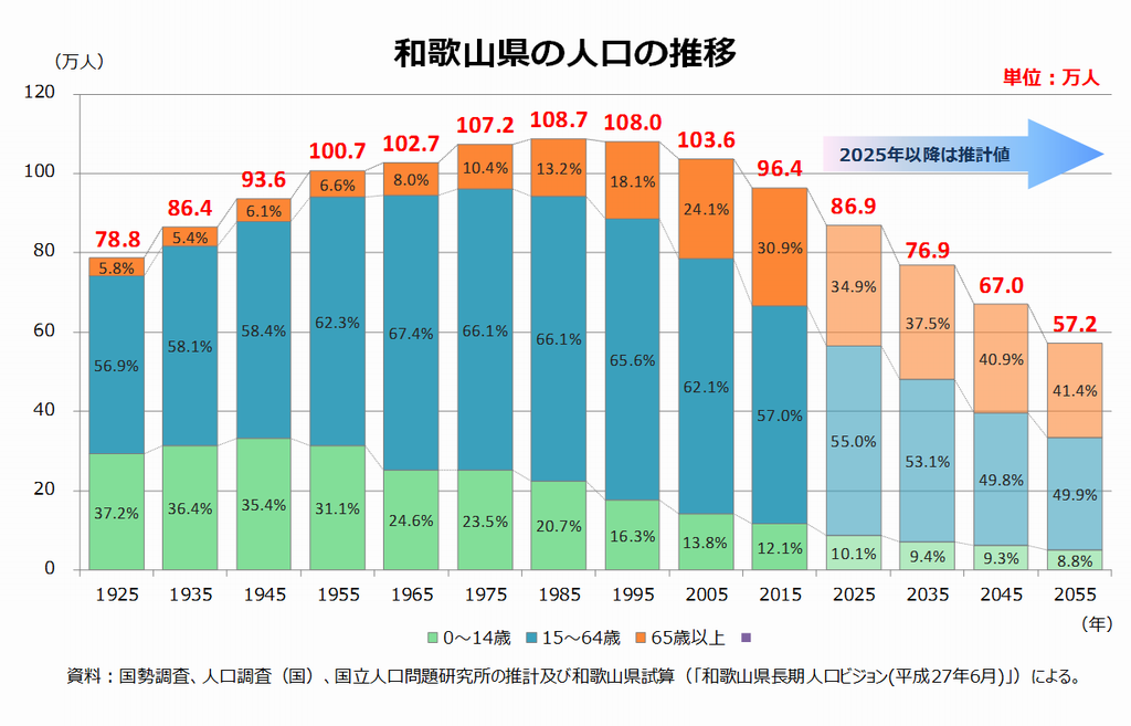65歳以上の高齢化率は33.9%で近畿地方で最も高く、全国でも11番目に高い県です。